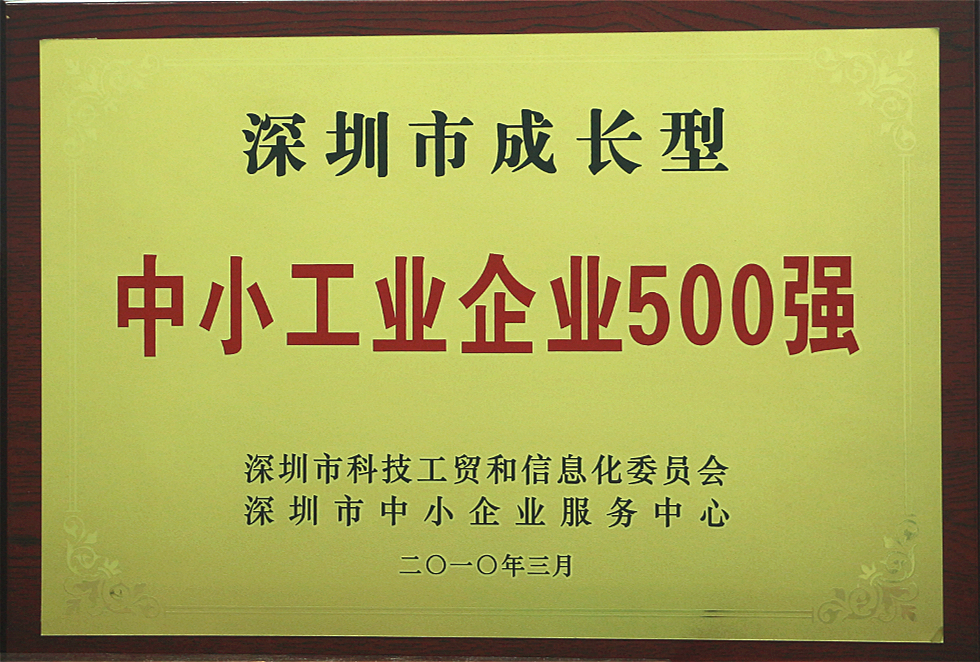 Shenzhen Top 500 Growth Small and Medium Industrial Enterprise certificate強